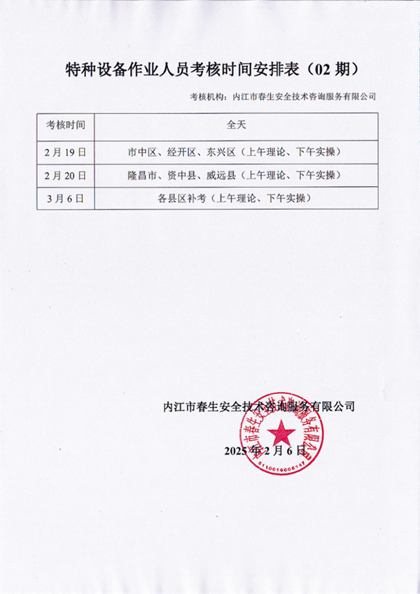 2025年春生公司第2期考核時間安排